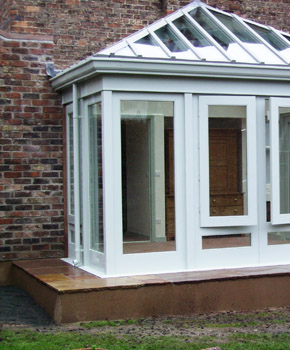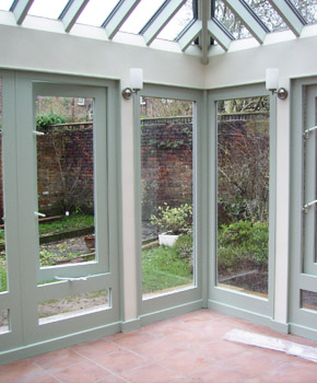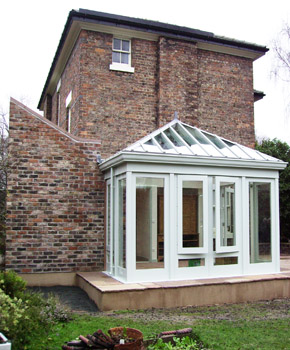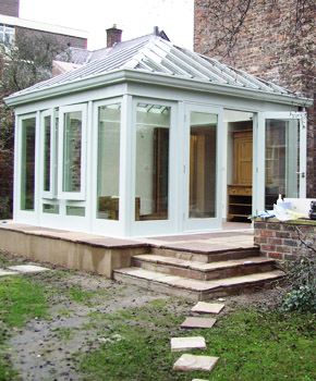 The client, a leading Profesor in Archaeology and his wife wanted something a bit different when they decided to add a conservatory to their house. They opted for a timber conservatory with a hand cut roof.
